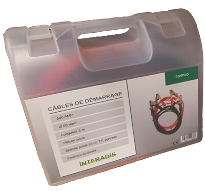 cable demarrage pro. 5,00 m 500 amp. 50 mm² pinces laiton